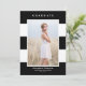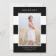 Teilen Sie Ihren Abschluss mit dieser individuell anpassbaren Foto Abschluss Ankündigung. Es weist ein schwarz-weiße Streifen-Muster auf. Personalisieren Sie diese moderne Ankündigung des Abschlusses durch Hinzufügen eines Fotos, Namens, Schule, Jahr und andere Details. Diese Foto Abschluss-Anzeigenkarte ist auch in anderen Kartenmaterial erhältlich.