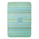 Aquamarine, blaue, grüne und weiße Streifen Muster Bath Mat. Stilvoll und zeitgemäß mit einem Ambiente aus den 70er Jahren. Ein eleganter Teppich ergänzt die Badezimmereinrichtung. Fügen Sie einen Namen hinzu oder ändern Sie das Monogramm, um es anzupassen.