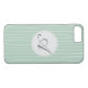 Dress up and protect your iphone with a modern gestreifte pattern in aquamarin und off white color with a round circle design element that is custom with your start in a stylish Script Schriftart.