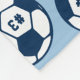 Personalisierter Fußball gemusterte Fleecedecke für Fußballspieler, die keine Tore auf dem Feld schießen, und für ihre Eltern, ihre Kinder zu unterstützen und bei kalten Spielen warm bleibe! Ein einzigartiges Teamgeschenk für Reiseturniere. Das Design enthält ein Muster von Fußballbällen, das mit der einheitlichen Spielerzahl abgestimmt ist. Enthält hellblau, marineblau und weiß.