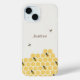 Ein Telefonkoffer mit einem Bienenmuster auf Honigwaben am unteren Ende und anpassbarer brauner Vorname oder Text: perfekt, um ein Geschenk an einen Imker, einen Bienenliebhaber oder eine Freundin zu machen, die die Natur Liebe.