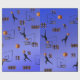 Auf blauem Gradientenhintergrund abgebildet sind Basketballspieler, Hoops, Kugeln, Zahlen, Logos, in einem bunten Basketballmuster