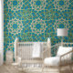 Muster für blaue Graphic Circles (blaues Muster für blaue, blaue und klebrige Tapete) abziehen. Die Innenarchitekten der Mieter können jedes Zimmer personalisiert aussehen.