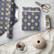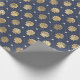Blaues und goldenes nautisches Musterpapier mit Muscheln und Perlen in einem Gittermuster.