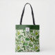 Mit Monogramm Tasche Shopping-Tasche mit einem eleganten botanischen Blätter Blattmuster und personalisierte Monogramm in schwarz auf einem grünen Streifen oben auf der Vorder- und Rückseite.