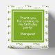 Sagen Sie "Danke" im Stil mit diesem vielseitigen Grün-Weiß-Party, das für jede Altersgruppe, von Kleinkindern bis Senioren, perfekt ist. Feiern Sie Geburtstage, Jubiläen oder ein besonderes Ereignis mit diesen eleganten Boxen. Die einfache grafische Gestaltung zeigt Ihr Alter in einem Offset-Zahlenmuster wiederholt, während die Worte "Danke" elegant auf dem vorderen Banner gedruckt werden. Fügen Sie eine persönliche Touch mit einer kurzen Nachricht an der Spitze hinzu, z. B. "Danke, dass du gekommen bist." Personalisieren Sie das Feld mit Ihrer Nachricht, Ihrem Ereignis, Ihrem Namen, Ihrer Initial- oder Monografie, indem Sie Textdateien verwenden. Diese kleinen Boxen sind ideal für kleine Geschenke oder Gastgeschenke bei Geburtstagsfeiern oder jeden Anlässen, wo Sie einen besonderen Meilenstein feiern. Ändern Sie einfach den Text zu Ihrem Event und machen Sie diese Kästchen wirklich einzigartig.