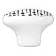 Keramik-Knob für das Muster des schwarzen und weißen Kreises. Einfache schwarze vertikale Streifen mit kleinen Kreisen und Dreiecken auf weißem Hintergrund.