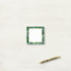 Kleine quadratische Post-it-Noten mit einem Bild von großen grünen grünen tropischen Blätter mit einem Spritzer von rosa hinter. Lackiert mit Acrylstoffen und digitalisiert. Ein weißer Rahmen mit einem Imitat, der mit einer goldenen Folie überzogen ist