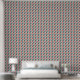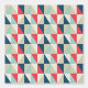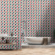 Die trendige Schale und die Tapete mit Stick sind geometrisch aus den dreiecken blau, rot und beige gehalten und bieten ein stilvolles Retro-Ambiente für moderne Räume