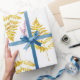 Umhüllungspapier, bedruckt mit original Aquarellfarben-Imitaten Goldfarn-Blätter.