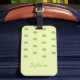 Dieses Design zeichnet sich durch einen lebhaften, gelben Hintergrund aus, der mit einem hübschen Muster grüner Äpfel geschmückt ist und zu einem stilvollen Monogramm gestaltet wurde. Die spielerische Kombination des lebendigen Fruchtmusters vor dem fröhlichen Hintergrund.
