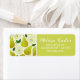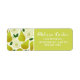 Ein Muster aus lebhaften grünen Birnen in Gelb- und Grüntönen mit hellgrünen Blätter. Einige der Birnen sind halbiert, um die saftigen Innenwände und Samen zu zeigen.