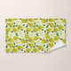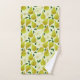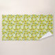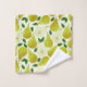 Ein Muster aus lebhaften grünen Birnen in Gelb- und Grüntönen mit hellgrünen Blätter. Einige der Birnen sind halbiert, um die saftigen Innenwände und Samen zu zeigen.