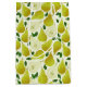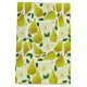 Ein Muster aus lebhaften grünen Birnen in Gelb- und Grüntönen mit hellgrünen Blätter. Einige der Birnen sind halbiert, um die saftigen Innenwände und Samen zu zeigen.