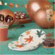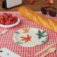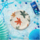 Diese Abbildung zeigt ein charmantes, minimalistisches Muster von Herbstblättern in lebhaften Rot-, Orange- und Farbtönen. Die Blätter verteilen sich auf einen zarten, beigen Hintergrund, mit zarten Spritzern mit schwarzer Tinte, die eine Touch von Textur und künstlerischem Flair hinzufügen. Das Design spiegelt das Wesen des Herbstes wider und ruft ein Gefühl von Wärme und natürlicher Schönheit hervor.