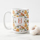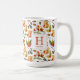 Für die Kaffeeliebhaberin in Ihrem Leben - ihre eigene Tasse mit einem Kaffeemaschinenmuster in Orange-, Gold- und Grüntönen. Personalisieren Sie mit Ihrem eigenen Initial und Namen.