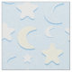 Mond und Sterne in weichem Gelb über einem hellblauen Himmelshintergrund. Ideal für Kinder und Babys, aber gut für jeden und überall.