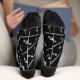 Ein Muster von Flöten und Musiknoten ist ein einzigartiges Design für Holzblasmusiker, Musiklehrer und Schüler in Konzerten, Flötenensembles und Marching-Band.