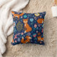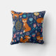Niedliche, farbige Füchse und Retro-Blume illustrieren nahtlose Muster mit dunkelblau anpassbarer Hintergrundfarbe.
