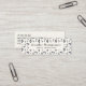 Mini Visitenkarten mit einem musikalischen Thema Design. Ein Muster mit Treppenschnitt, Basskleber und anderen musikalischen Symbolen.