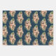 Umhüllende Papierbögen mit niedlichem Aquarelldesign mit einem niedlichen Faultier, das an einem Baumzweig hängt und von grünen tropischen Blätter umgeben ist. Dunkelblauer Hintergrund.