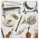 Dieses Design zeichnet sich durch ein zufälliges Muster von Foto-Illustrationen von Musikinstrumenten aus, die in Symphonieorchester verwendet werden - ideal für Musiker und Musikliebhaber.