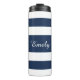 Personalisierte blaue Streifen Muster Thermal Tumbler. Thermalwäscher mit kühlem blau-weißem Streifen-Muster und personalisiertem Namensdruck. Geben Sie Ihren Namen in das Vorlagenfeld ein, um ihn zu personalisieren. Das passende Abendessen und das Zubehör für die Küche sind vorhanden.