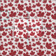 Unsere dunkelrote und weiße kanadische Fahne inspiriert Stoff zeichnet sich durch ein Allovermuster fallender Ahorn-Blätter in verschiedenen Größen aus.