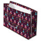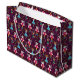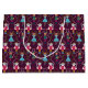Whimsical und festliche Weihnachtsgeschenk-Tasche mit handgezeichneter Abbildung von Katze, Hund und Maus als Nutcracker Ballett-Figuren. Der Hintergrund ist rot.