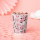 Dieses Design zeichnet sich durch ein Muster aus, das verschiedene Schönheitsprodukte auf einem rosa Polka Punkt Muster beinhaltet.