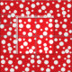Eine Mischung aus großen und kleinen weißen Punkten im roten Hintergrund.