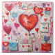 Keramik Kachel mit einem skurrilen Muster. Scrapbook Stil Doodles und Skripte. Rote und rosa Herzen und verschiedene Briefe und Umschläge verstreut herum.