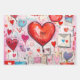 Papier mit einem skurrilen Muster umhüllen. Scrapbook Stil Doodles und Skripte. Rote und rosa Herzen und verschiedene Briefe und Umschläge verstreut herum.