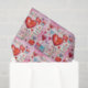 Gewebe mit einem skurrilen Muster. Scrapbook Stil Doodles und Skripte. Rote und rosa Herzen und verschiedene Briefe und Umschläge verstreut herum.
