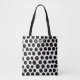 Abstraktes Schwarzweißmuster mit drei Buchstaben pro Monogramm. Offene Oberbänder und schwarze Doppelschultergurte für einfaches Tragen. Ideal für Schule, Shopping und Reisen. Kimberly Brett.