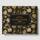 Gold Elegantes, blumenfeuerförmiges Muster auf schwarzem Hintergrund. Maßgeschneiderte Hochzeitsguestbook-Vorlage.