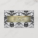 Retro Schwarz und Weiß Damask Muster Marmorkarten Business Cards. Ein Marmorkasten aus Imitaten mit Ihrem Namen oder Firmennamen hebt sich von diesem schwarz-weiß gestauten Muster hervor. Die Damast-Visitenkarte hebt sich wirklich von der Masse ab.