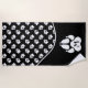 Fun Schwarz-Weiß Design gespalten mit einer lustigen Wellenform. Unten befindet sich ein weißer Hundepfoten, auf dem ein schwarz personalisierbares Monogramm steht. Oben ist ein Muster weißer Hundentafeln mit blauer Hintergrundfarbe.