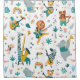 Eine Gruppe niedlicher Waldtiere, umgeben von bunten Blume und Regenbögen, spielen Musik. Zu den Tieren zählen Elefanten, Giraffen, Löwen, Zebras und Nilpferde.