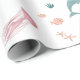 Eine schöne farbenfrohe Aquarell Ozeantiere Muster Design. Eine Ozeangestalt mit niedlichen Meerestieren wie Schildkröte, Wal, Delfin, Quallen, Fisch, Narwal, Pflanze und Korallen. Ein ideales Design für jeden, der Meerestiere, Aquarellbilder und Ozeandesigns Liebe.