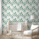 Pastellgrüne Blätter in einem nahtlosen Muster auf weißem Hintergrund.