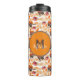 Der Whimsical Fall Thermal Tumbler verfügt über Kürbiskürbchen, kleine Blumenstrauß und hellorange-weiße Streifen. Anpassen mit Namen und Initial