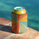 Muster für Wirbel im Retro-Hippie-Mixed Paint-Stil Dosenkühler