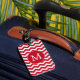 Diese niedlichen und modernen Monogramm Gepäckanhänger haben ein cooles Zickzack Streifenmuster und den Buchstaben Ihrer Wahl.