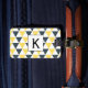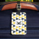 Gepäckanhänger aus gelbem und kohlegrauem Dreieck. Mit Monogramm moderne Gelb- und Holzkohle-Grau abwechselnd Dreiecke.