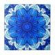 Keramik Kachel in geometrischer Blume in tiefblauem Kobaltblau und Marine / Indigo, auf Weiß Akzent mit türkisfarbenem