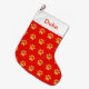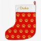Niedliches goldenes Pfotenmuster auf rotem Hintergrund Weihnachts-Strumpf. Name kann personalisiert sein.