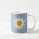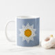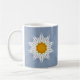 Schönes Muster in Blütenform in weiß und gelb auf hellblauem em Muster
