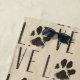 Ein Strandhandtuch, das sich in einer niedlichen Abbildung des braunen Pfotendrucks eines Haustieres mit Grunge-Stil wiederholt. In den Buchstaben wird das Wort "Liebe" mit dem Pfotendruck anstelle des Buchstabens "o" beschrieben. Phantastisch für Liebhaber von Haustieren.