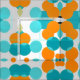 Rundorange und hellblaue Muster schaffen ein faszinierendes modernes Design aus der Mitte des Jahrhunderts. Retrokreise in lebhaften Farben